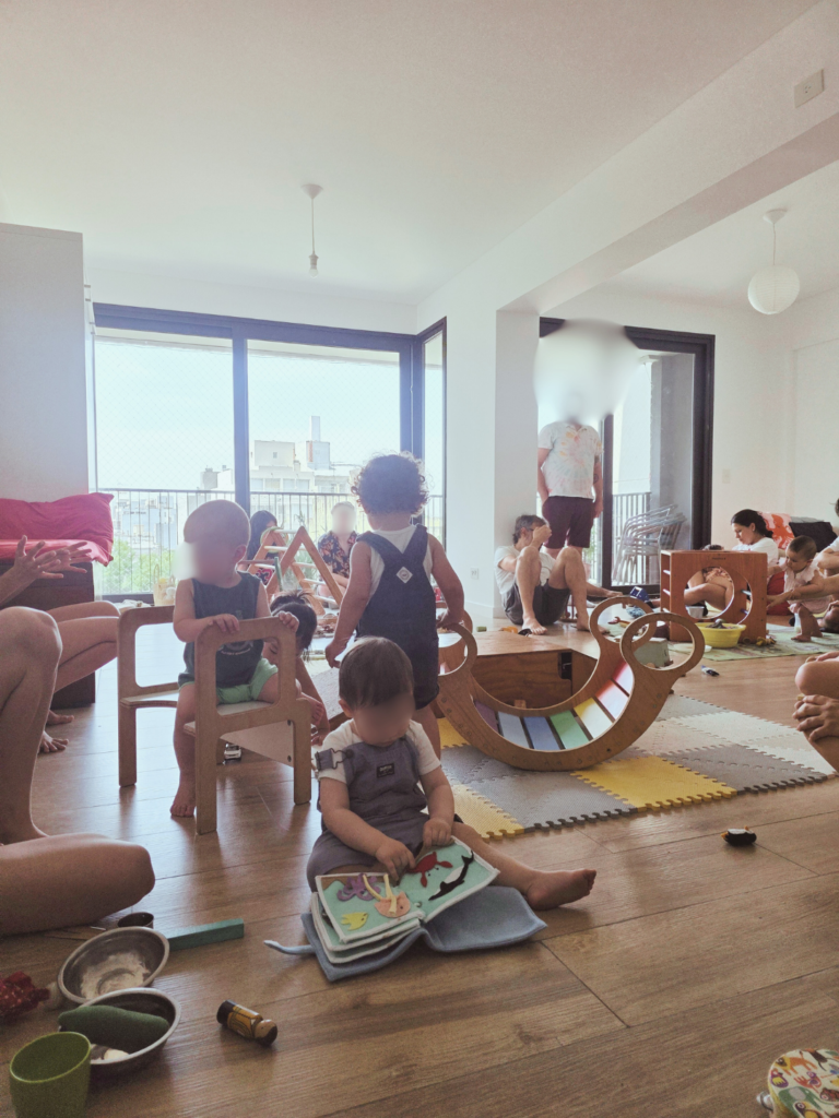Las propuestas de juego libre con bebés —al menos en el imaginario colectivo— estaban (y siguen estando) dirigidas casi exclusivamente a ellas: a las madres, a las mujeres, a las puérperas.